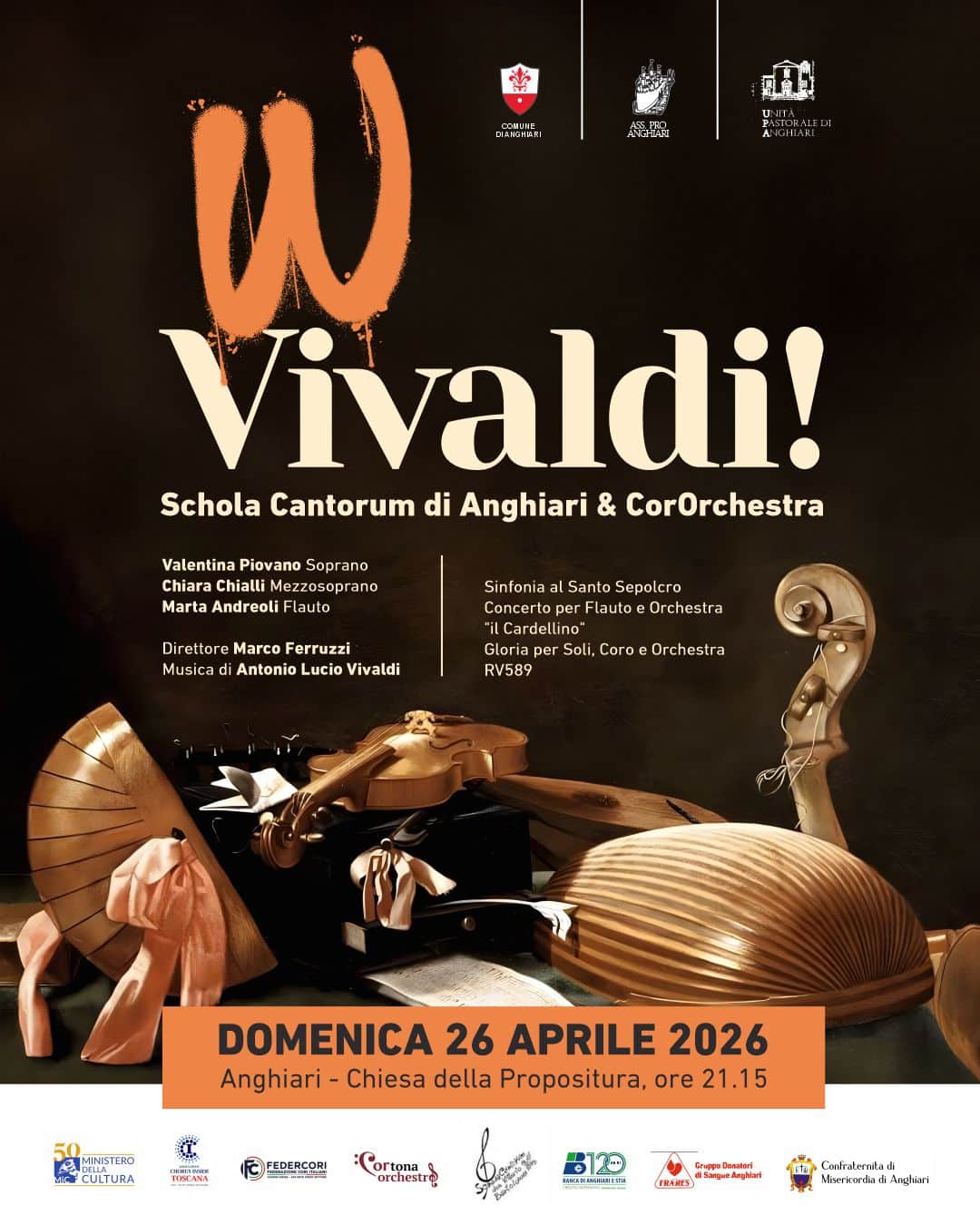 Una serata di grande musica nel cuore di Anghiari: domenica 26 aprile 2026 alle ore 21.15 la Chiesa della Propositura ospiterà il concerto “W Vivaldi”, dedicato alle opere di Antonio Vivaldi.