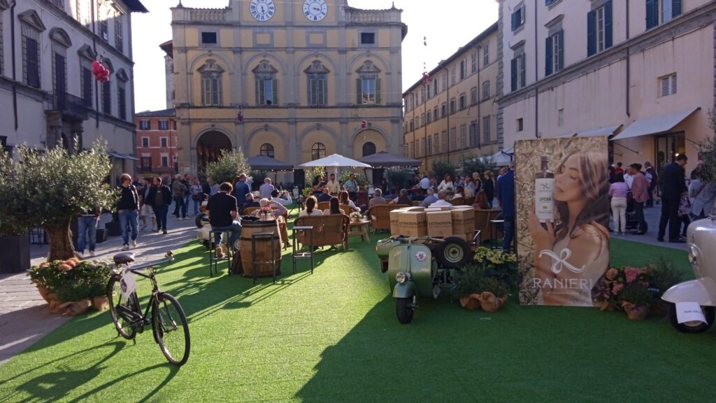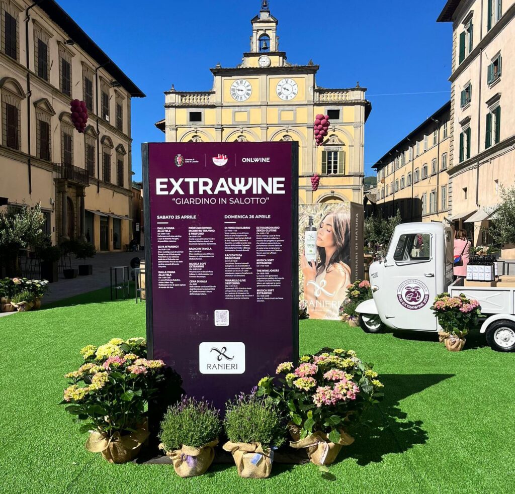 Molto apprezzato l’allestimento del “Salotto in Giardino”, cuore di Extra Wine, arricchito da elementi scenografici, arredi tematici e mezzi d’epoca Vespa e Ape grazie alla collaborazione con Scooter Vintage.