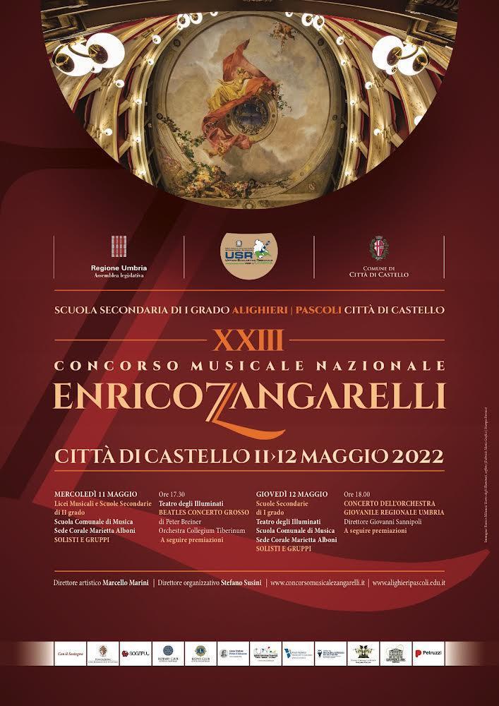 Mercoledì 11 maggio e giovedì 12 maggio 2022, si svolgerà la XXIII edizione del Concorso Musicale Nazionale “Enrico Zangarelli”, sotto la direzione artistica del M° Marcello Marini. Il Concorso si svolgerà in presenza anche se questa edizione non rappresenterà un ritorno alla completa normalità, in considerazione dell’impatto che la pandemia ha avuto anche sul corrente anno scolastico. Per questo motivo il Regolamento non ha potuto prevedere la presenza delle orchestre e di gruppi di musica da camera superiori al trio. Questa edizione vedrà esibirsi, pertanto, solisti e gruppi fino al trio sia dei Licei Musicali (il giorno 11 maggio) che delle Scuole secondarie di primo grado (il giorno 12 maggio). Saranno presenti allievi provenienti da trentatré scuole, in rappresentanza di tutto il centro Italia e oltre, per un totale di circa 200 esibizioni. È stata mantenuta anche la sezione Video che ha dato la possibilità alle scuole di inviare lavori multimediali che, pur avendo al centro la musica, avessero carattere pluridisciplinare. A questa sezione partecipano anche scuole primarie.